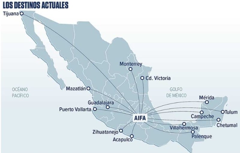 A partir de febrero, Mexicana de Aviación sumará tres nuevas rutas con servicio desde el Aeropuerto Internacional Felipe Ángeles (AIFA) hacia Uruapan, Ciudad Ixtepec y Nuevo Laredo. Los tres nuevos destinos se sumarán a la red de 14 rutas que la aerolínea estatal ya opera en el país.