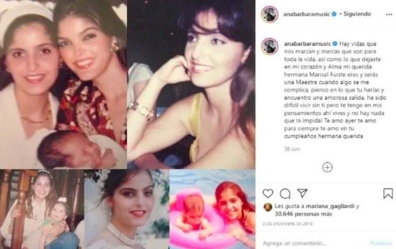 Aunque, Ana Barbara ha hablado en diversos medios sobre la muerte de su hermana, la cantante cada que habla del tema termina muy conmovida, pues la cantante recuerda que cuando se enteró del fallecimiento de Marissa, ella estaba preparando el lanzamiento de un disco.