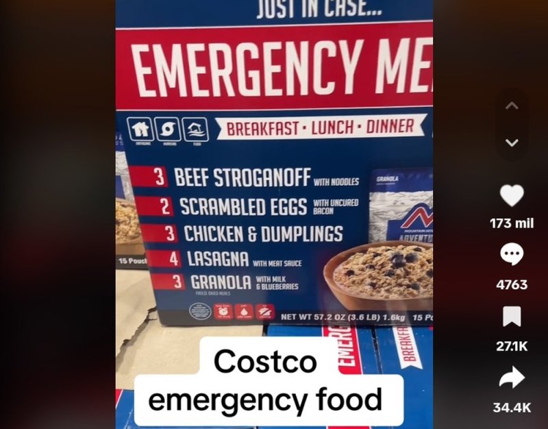 Costco se ha convertido en el epicentro de una teoría de conspiración apocalíptica luego de que una cliente compartiera la amplia variedad de kits de "comidas de emergencia" actualmente disponibles en el gigante minorista.