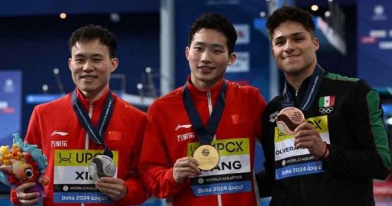 Osmar Olvera ganó la medalla de bronce para México en clavados en el Campeonato Mundial de Deportes Acuáticos Doha 2024, en el trampolín de tres metros con 498.40 pts, tras haberse colgado el oro el sábado en el trampolín de un metro. Con esta nueva medalla, ya son cuatro los metales en Mundiales para el joven de 19 años, luego de haberse hecho con la plata en las dos mismas categorías en los mundiales de Fukuoka (Japón) en 2023.
