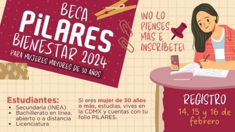 Eres mujer y te encuentras estudiando la secundaria, bachillerato o la licenciatura, el Subsistema de Educación Comunitaria Pilares dio a conocer la convocatoria del programa Beca Pilares Bienestar 2024. Su cobertura es para mujeres de 30 años en adelante que residan en la Ciudad de México. Este apoyo económico es de hasta 14 mil 400 pesos.