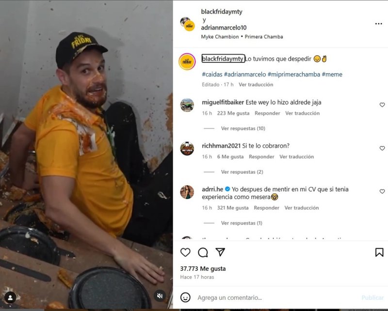 A pesar de todo, tomó la situación con humor e incluso comentó que este pequeño fragmento del video les daría una gran cantidad de vistas; mientras que Black Friday compartió el clip con la canción viral de “Mi primera chamba” y aseguraron que tuvieron que despedir a Adrián Marcelo del puesto de mesero.