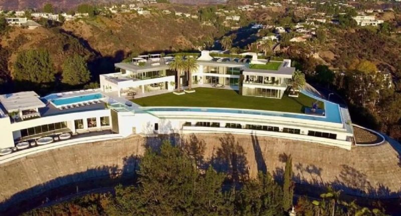 La mansión cuenta con una discoteca, garaje para 50 automóviles, un teatro, sala de juegos, simulador de golf, salón de belleza, área para yoga, cinco piscinas, la suite principal es de 371.6 metros cuadrados, tiene una vista de 360 grados del sur de California.