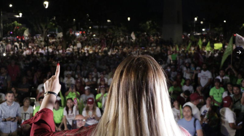 Con más de una hora de retraso la candidata al gobierno de Jalisco por la coalición "Sigamos Haciendo Historia" se presentó en la plazoleta del barrio del Retiro de Guadalajara para acompañar al candidato a diputado federal por el distrito 8, Juan José Hernández Rodríguez (Choco), en su cierre de campaña.