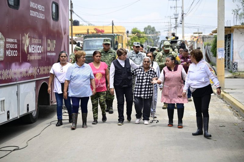 En el municipio de Chalco se mantiene el despliegue de elementos, personal y brigadistas, así como equipo especializado con jornadas permanentes de desazolve, limpieza, salud, vacunación, seguridad y distribución de alimentos y agua.