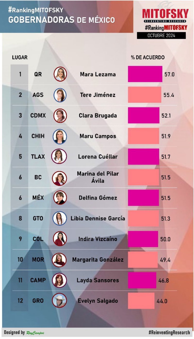 En la más reciente encuesta realizada por Mitofsky, la Jefa de Gobierno de la Ciudad de México, Clara Brugada, ha sido posicionada como una de las tres gobernadoras mejor evaluadas del país. Este reconocimiento destaca su desempeño y gestión al frente de la capital, donde ha implementado diversas políticas públicas enfocadas en el bienestar social y el desarrollo sostenible.