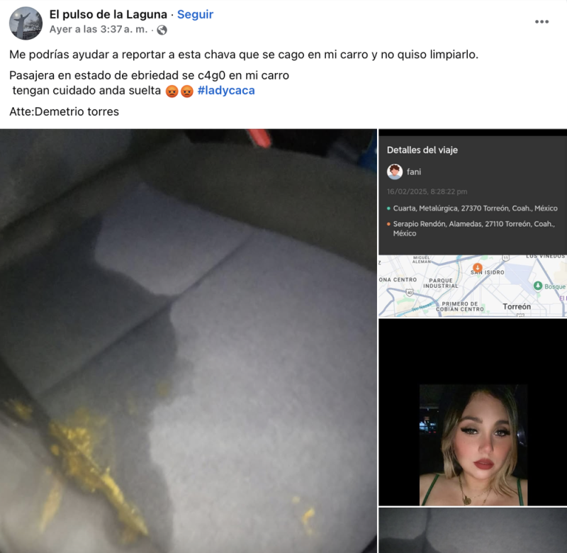 Según los informes, la mujer, en estado de ebriedad, decidió dejar un inesperado "regalito" para el conductor de un servicio de Didi, convirtiendo un viaje cotidiano en un episodio digno de mención. Aún se desconoce la identidad de la responsable, pero su hazaña ha sido suficiente para viralizar el hashtag #LadyCaca, que rápidamente se ha apoderado de las plataformas digitales.