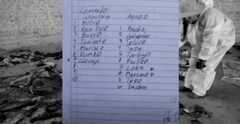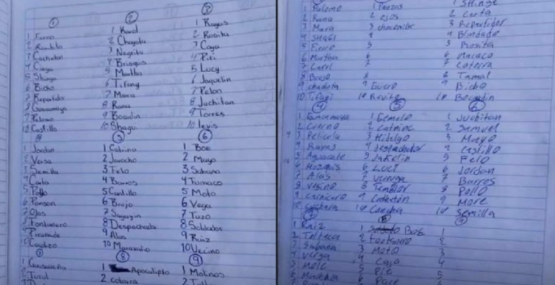 Nombre y apodos acomodados en listas hallados en el rancho de exterminio