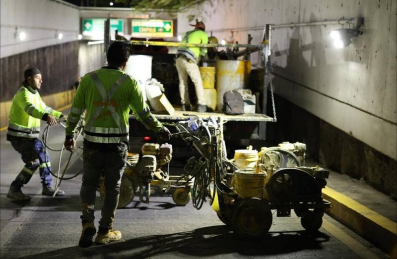 Asimismo, se llevaron a cabo trabajos de rehabilitación en el paso a desnivel de avenida Hidalgo, una zona de alto tránsito vehicular que requiere atención constante. Gracias al trabajo silencioso pero fundamental de la Gerencia Nocturna, se logró realizar el mantenimiento sin afectar la movilidad diaria, reafirmando el compromiso con una ciudad más funcional y segura.