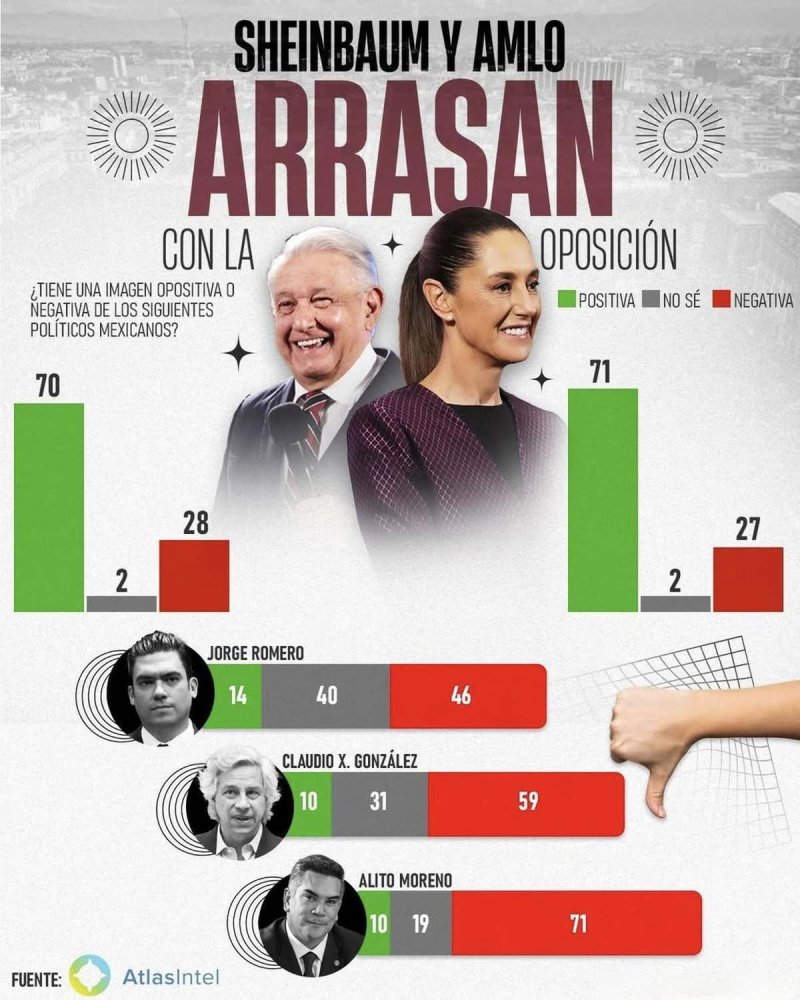 Sheinbaum y AMLO arrasan con la oposición: AtlasIntel