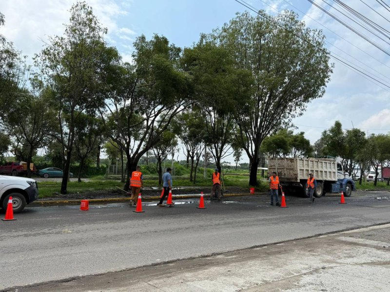 Las cuadrillas municipales realizan labores de bacheo emergente. Es importante señalar que estas acciones son temporales y no representan una solución definitiva, pues en la zona se desarrolla un proyecto integral en coordinación con el Gobierno del Estado, el cual permitirá atender de raíz la problemática.
