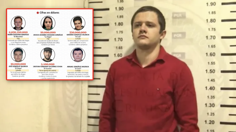 La lista está integrada por el hijo del Mencho, Rubén Oseguera González, El Menchito, y su hija Jessica Johanna Oseguera González, La Negra; además del yerno Cristian Fernando Gutiérrez Ochoa, El Guacho, y los cuñados Gerardo González Valencia, El Lalo; José González Valencia, El Chepa, y Abigael González Valencia, El Cuini, cabeza del grupo al que presuntamente pertenecían los dos anteriores: Los Cuinis. Toda una estirpe.