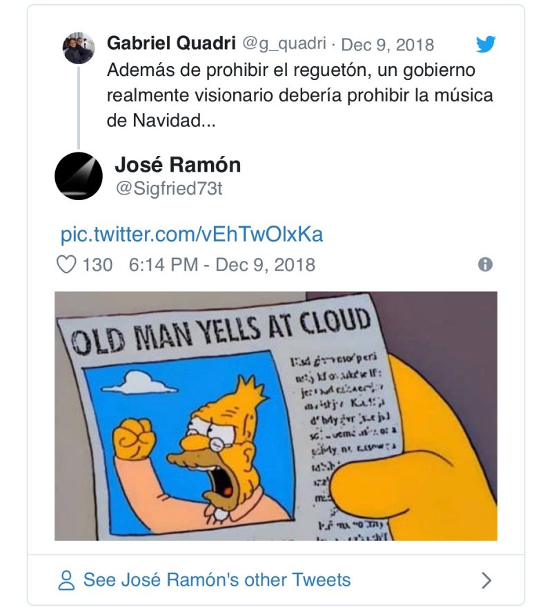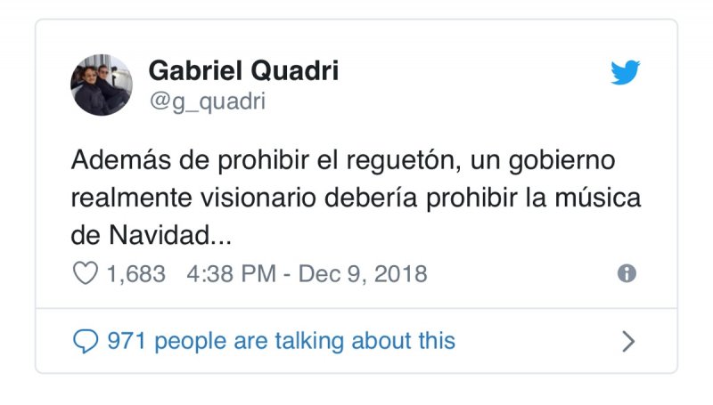 “Además de prohibir el reguetón, un gobierno realmente visionario debería prohibir la música de Navidad”.