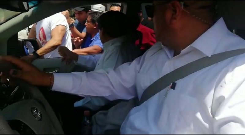 Para salir, nuevamente se formó una valla humana, tal  como ocurría en la campaña del hoy presidente de México, Andrés Manuel López Obrador para que Barbosa pudiera abandonar la zona.