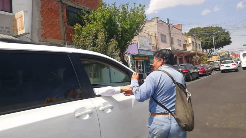 A la par de la música avanzaba una camioneta blanca Toyota Sienna con placas de la Ciudad de México. “Háganse a un lado”, “¡cuidado!”, alertaban ocho jóvenes que previamente recibieron indicaciones de Eric Cotoñeto sobre cómo abrir paso a la unidad y a otra Suburban del mismo color que la escoltaba.