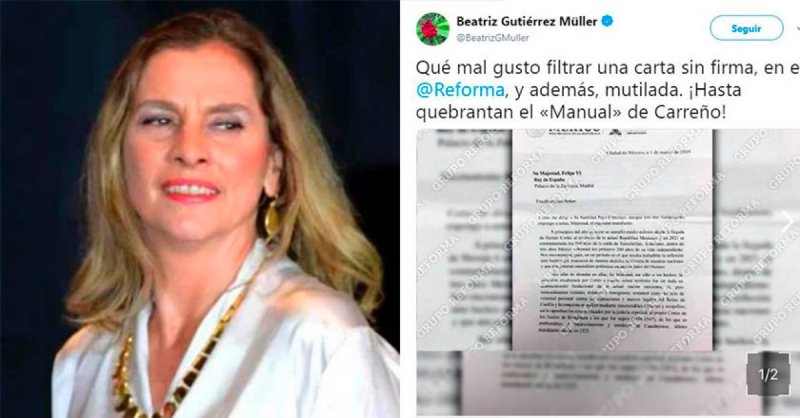 Sin embargo, la doctora, literata y compañera de vida Beatriz Gutiérrez Müller compartió en su cuenta de Twitter que esta publicación era de mal gusto, pues estaba sin firma y mutilada: