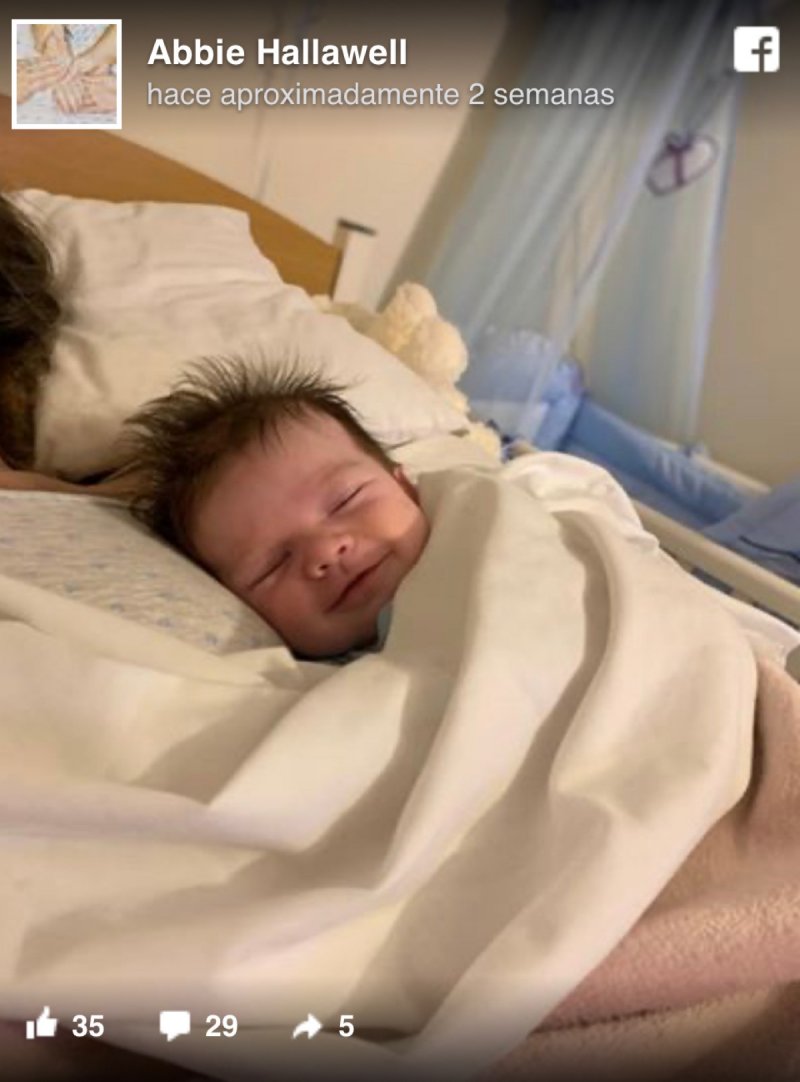 Abbie Hallawell captó el momento en que su nieto recién sonríe por primera vez al descansar sobre el cuerpo de su madre, quien a causa del parto sufrió de muerte cerebral y luego perdió la vida.