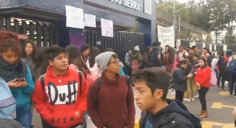 Al menos 30 jóvenes encapuchadas mantienen cerrada la Escuela Nacional Preparatoria 3 “Justo Sierra” de la UNAM, que se ubica en la avenida Ingeniero Eduardo Molina, en la alcaldía Gustavo A. Madero, para exigir la renuncia de cinco profesores por supuesto acoso sexual.