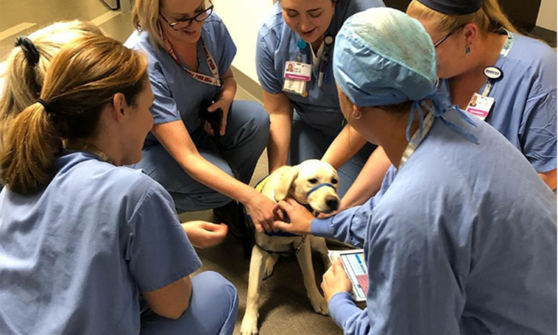 En Estados Unidos, se ha encontrado una mejor manera de dar un descanso mental y alivianar el trabajo del personal médico agotado, llevando perros de terapia a los hospitales, para que los profesionales liberen su mente por unos minutos y no piensen en su entorno.