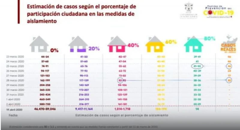Si nadie se aislara, en el peor escenario, para el 19 de abril se tendrían entre 46 mil 470 y 59 mil 046. Mientras que si la medida fuera del 80% de la población, los casos llegarían a solo 14.