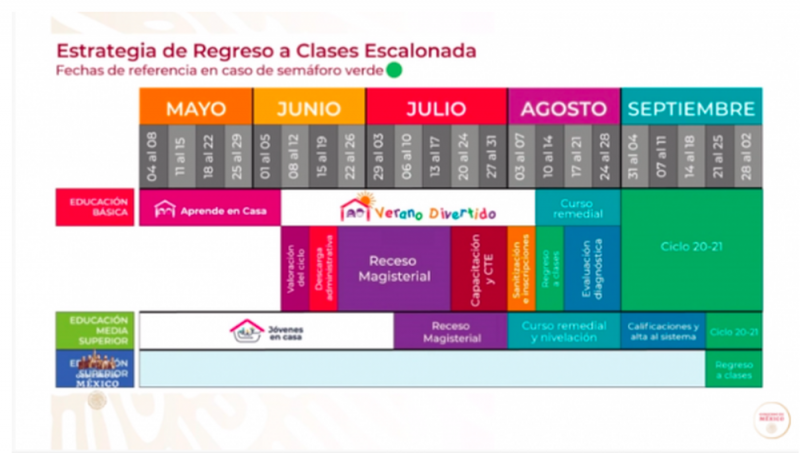 “Sí vamos a regresar cuando sea oportuno y esto se va a señalar por la Secretaría de Salud cuando tengamos estados con semáforo verde. Queremos que haya un momento presencial de las niñas y los niños en la escuela para poder cerrar el ciclo escolar”, dijo Moctezuma.