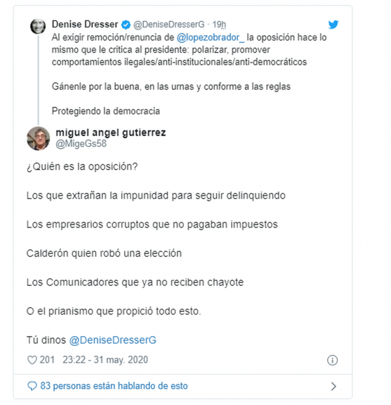 controversial politóloga Denise Dresser en su mensaje a través de las redes