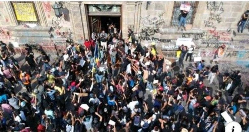 • Al grito de “¡JUSTICIA!”, manifestantes ROMPEN puerta Palacio Nacional en Jalisco