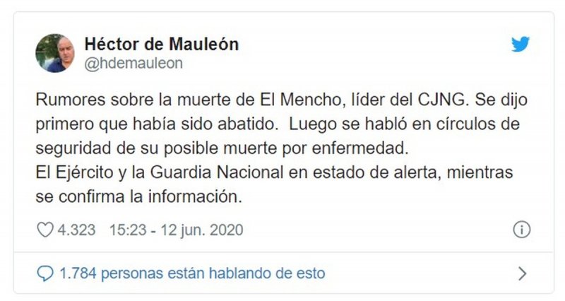 De acuerdo con el periodista Héctor de Mauleón, quien publicó en redes sociales los rumores del deceso del hombre más buscado por la Administración de Control de Drogas de Estados Unidos (DEA, por sus siglas en inglés).