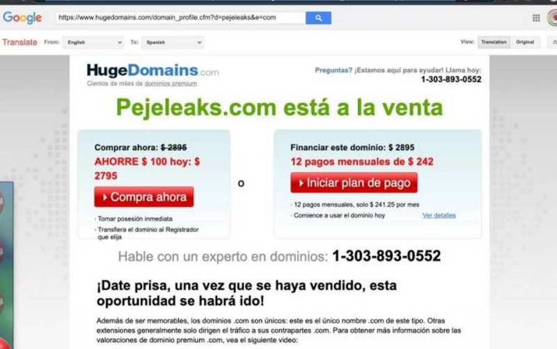 El portal HugeDomains señala que el dominio de la página web se encuentra a la venta.