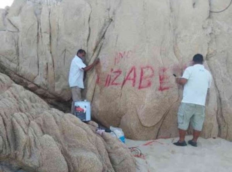 Ante ello, el personal de la Coordinación Municipal de la Zona Federal Marítimo Terrestre de Los Cabos (ZOFEMAT), -a cargo de Javier Ontiveros Fabián-, se percató de que el área de piedras había sido grafiteada.