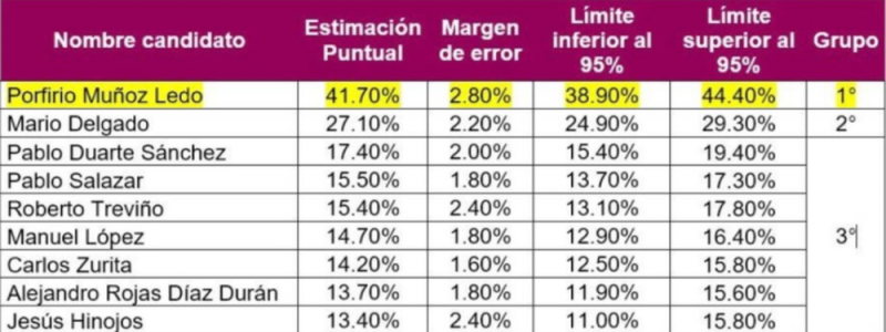 Muñoz Ledo, con 41.7% de reconocimiento, aventajó a Mario Delgado, quien recibió 27.1%.