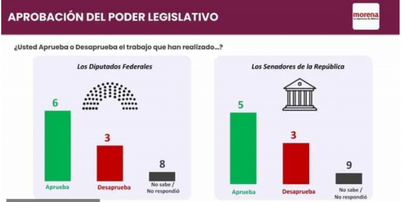 Los diputados federales y senadores de Morena también resultan bien evaluados con 61 y 58 por ciento respectivamente.