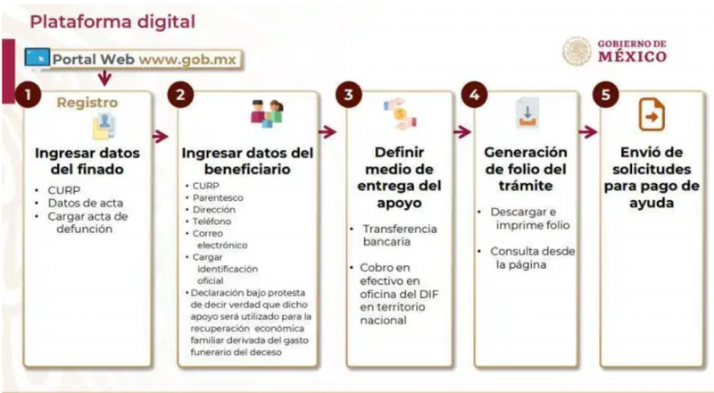 A partir del día de hoy, los deudos pueden hacer la solicitud de apoyo en la página http://deudoscovid.gob.mx; para ello es necesario llenar un formato y adjuntar el acta de defunción del fallecido.