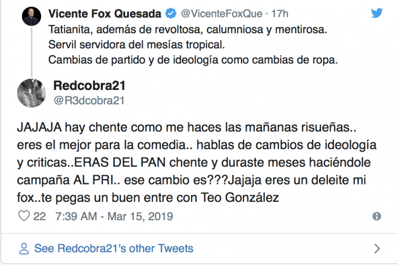 Fox ha dado mucho de qué hablar en los últimos meses, pues ha pasado de ser un expresidente con baja popularidad a ser un tuitero anti AMLO con aún menos admiradores, atacando todo lo relacionado con el Presidente Andrés Manuel y el Gobierno de México.