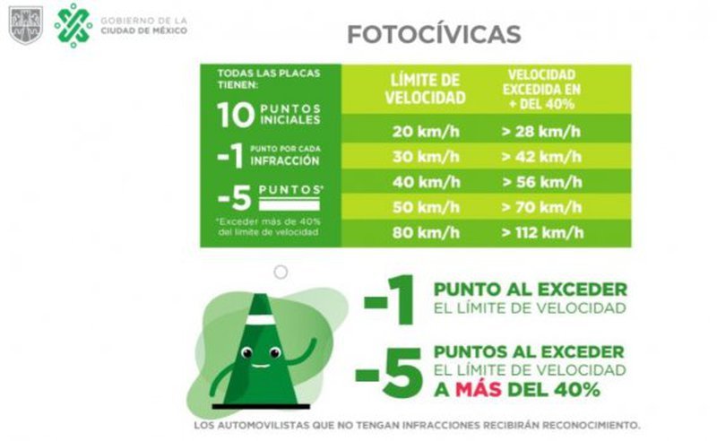 Cuando el conductor rebase por más del 40% de la velocidad permitida, automáticamente se restarán cinco puntos a la placa.