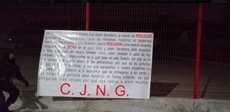 En la misiva, el CJNG refiere al enfrentamiento que tuvo con elementos de la Fuerza Civil en Misantla, donde tres sicarios fueron abatidos.