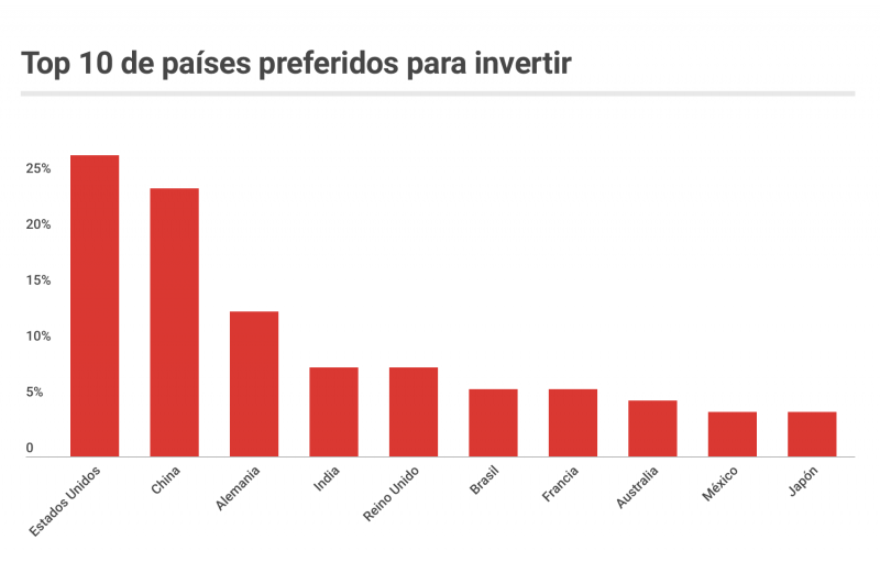 El país pasó del lugar 13 al número 9, con el 4% de las preferencias de los encuestados para invertir en 2019. Aunque es el mismo porcentaje que el año pasado, se benefició del descenso en el ranking de Japón, Canadá, Rusia y Hong Kong.