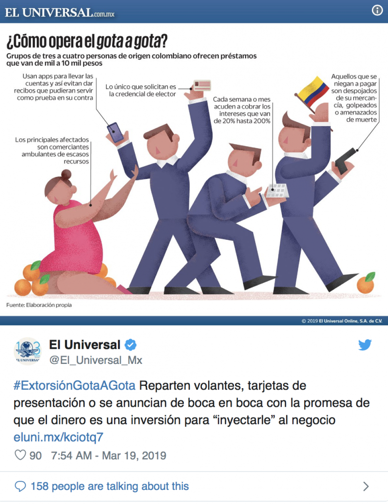 Según ha dado a conocer El Universal las autoridades han detectado a un grupo de colombianos que operan en Tabasco con la modalidad “gota a gota”.