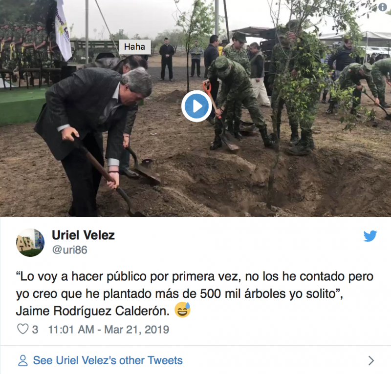 En la conmemoración del Día Internacional de los Bosques, el gobernador Jaime Rodríguez Calderón presumió haber plantado más de medio millón de árboles él solo.
