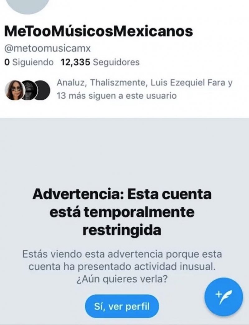 La cuenta de Twitter MetooMúsicosMexicanos fue restringida tras la muerte de el bajista de Botellita de Jerez, Armando Vega Gil.