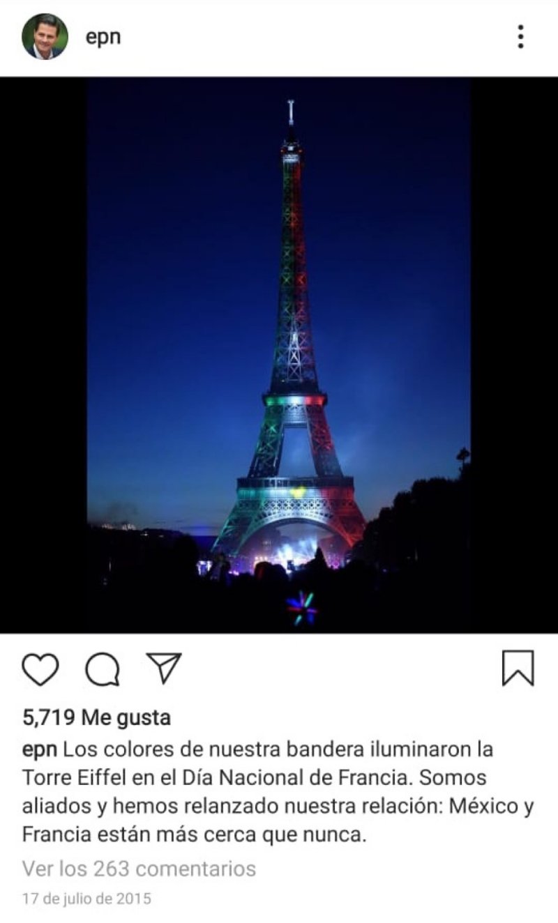 En 2015, Peña Nieto y su comitiva acudieron a Paris, a bordo del avión Presidente Juárez, para una serie de actividades que se llevarían a cabo del 13 al 16 de julio, entre las que se encontraban la celebración del desfile militar con motivo del Día Nacional, que tuvo lugar el día 14.