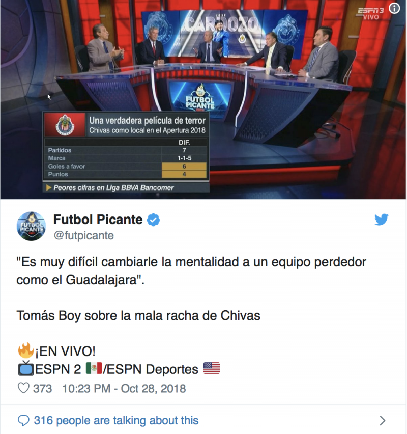 Pero no sólo las Chivas han pasado por el agudo verso de Boy Espinoza, pues también ha centrado sus críticas en equipos como Pumas, al cual llamó “fascista” por hacer que los rivales escuchen su himno previo a los partidos.
