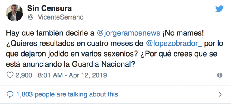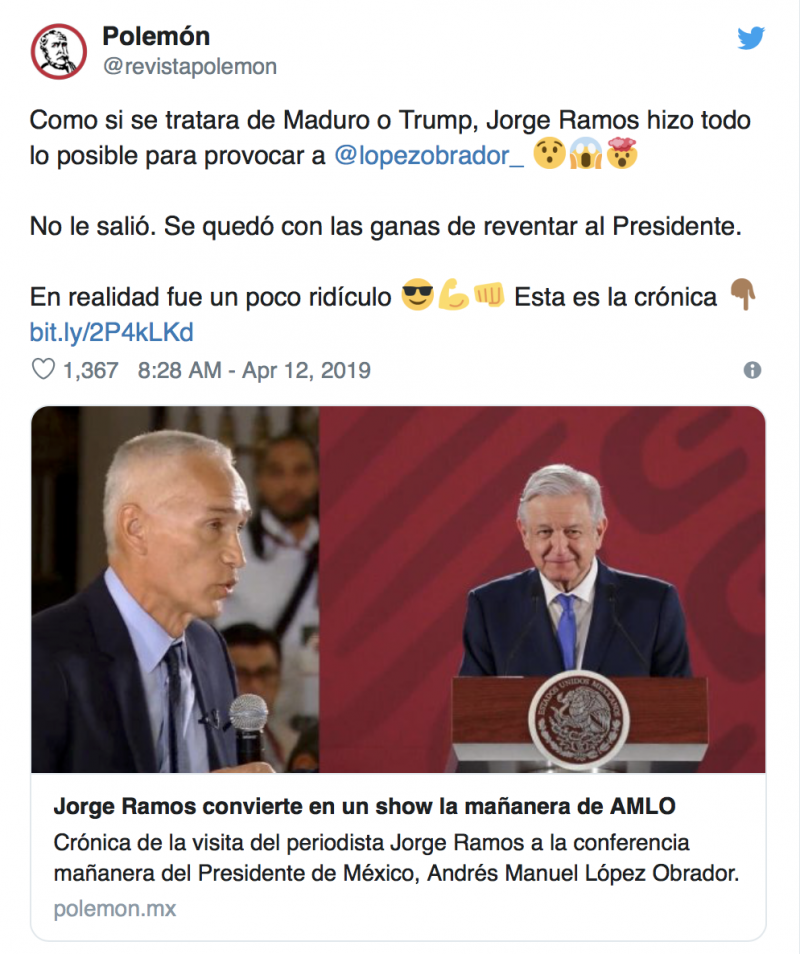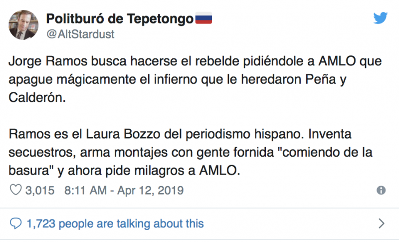 El reportero y presentador estrella de Univisión armó toda una polémica tras cuestionar al mandatario sobre la violencia, asegurando que, de seguir así, este será el año más sangriento en la historia reciente de México e increpándolo sobre su postura acerca de Nicolás Maduro, a pesar de haber intervenido para que este regresara sano y salvo a Miami.