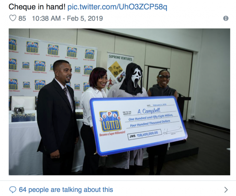 El ganador del Súper Loto decidió ocultar su identidad y utilizar una máscara de la película Scream para reclamar el premio de 158, 400, 000 millones.
