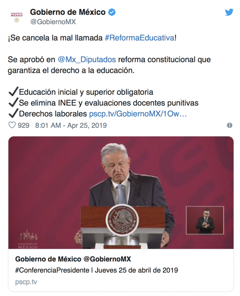 La nueva reforma educativa de AMLO es un cambio muy importante en materia educativa y se cumple la promesa de AMLO de derogar la reforma de Peña Nieto