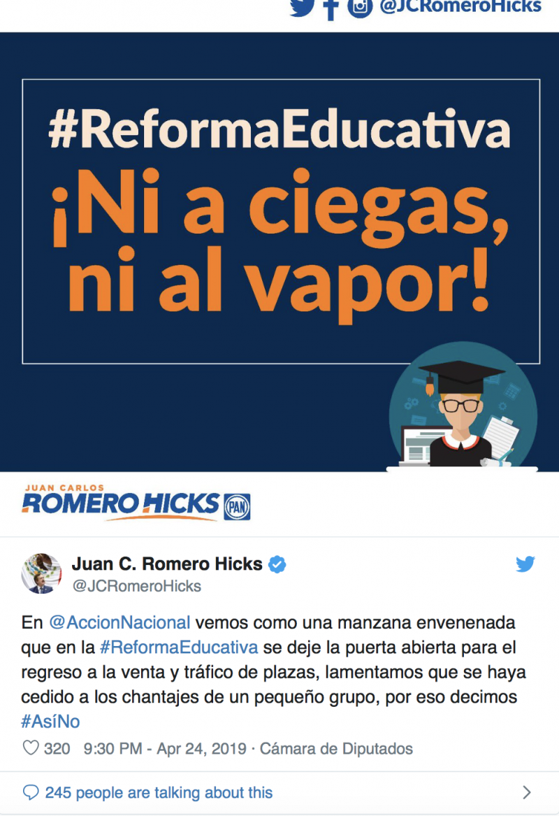 El líder panista Juan Carlos Romero Hicks afirmó en conferencia de prensa que este transitorio deja abierta la interpretación respecto al escalafón laboral en lugar del sistema de evaluación abierto.