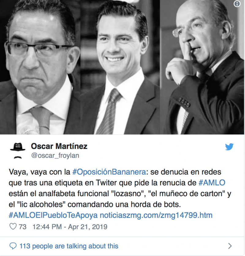 Por lo anterior, los defensores del presidente de la república crearon la etiqueta #OposiciónBananera, haciendo referencia a tres polémicos personajes del mundo de la política, los cuales ellos consideran que son los que están detrás de las cuentas falsas que promueven el odio en contra del mandatario.