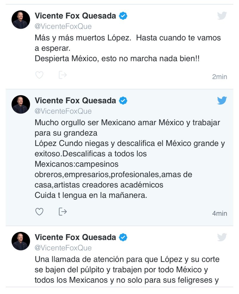 “¡Una nación como Mexico no puede dejar todo en palabrería, necesitamos acciones que vean por todos los mexicanos, que vea por la democracia!”, refirió Fox en su cuenta de Twitter.