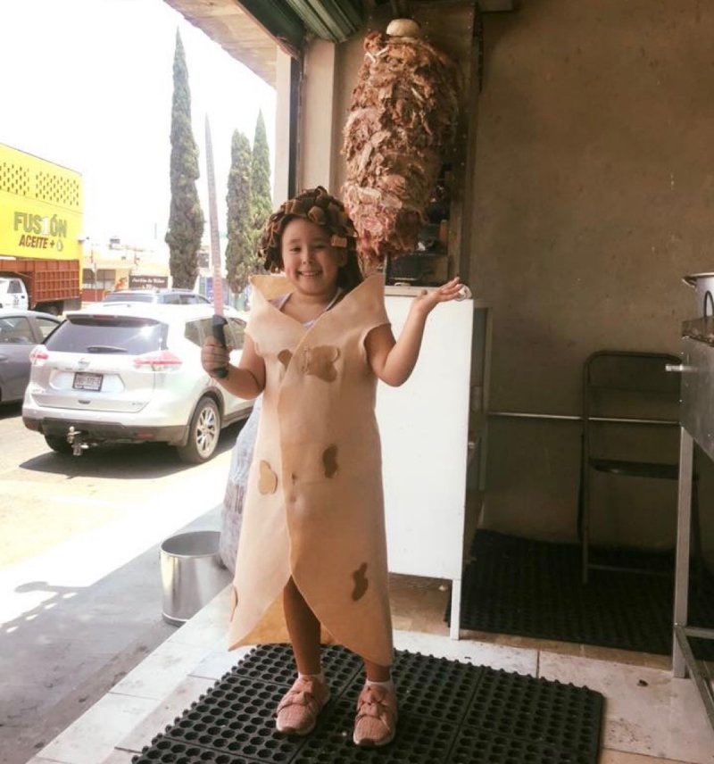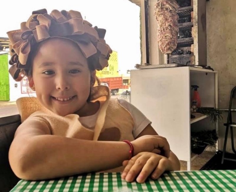 En Puebla, una pequeña niña llamada Pía decidió disfrazarse de taco árabe para promocionar ‘Tacos el Compa’, la recién inaugurada taquería de sus tíos.