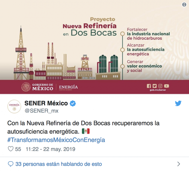 El pasado 9 de mayo López Obrador informó que la refinería Dos Bocas quedará a cargo de Petróleos Mexicanos bajo dirección de la Secretaría de Energía, por lo que declaró: